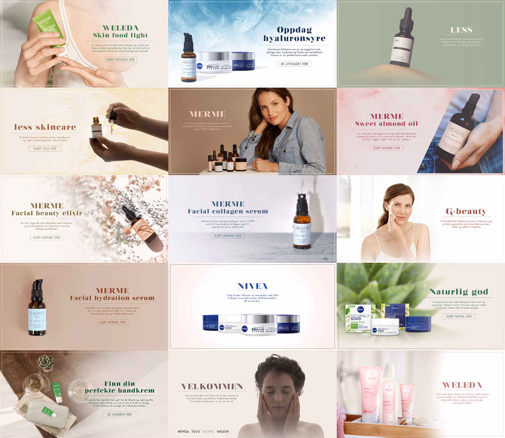 Jeg ble hentet inn for å utvikle hele identiteten fra bunnen av, en nettbutikk og innhold til sosiale medier. Selv om G-beauty i utgangspunktet forbindes med vitenskap og minimalisme, som ofte har et sterilt og enkelt preg, ønsket kunden en visuell identitet som skapte kontrast – med et mer lekent og levende uttrykk, kombinert med feminine farger.
