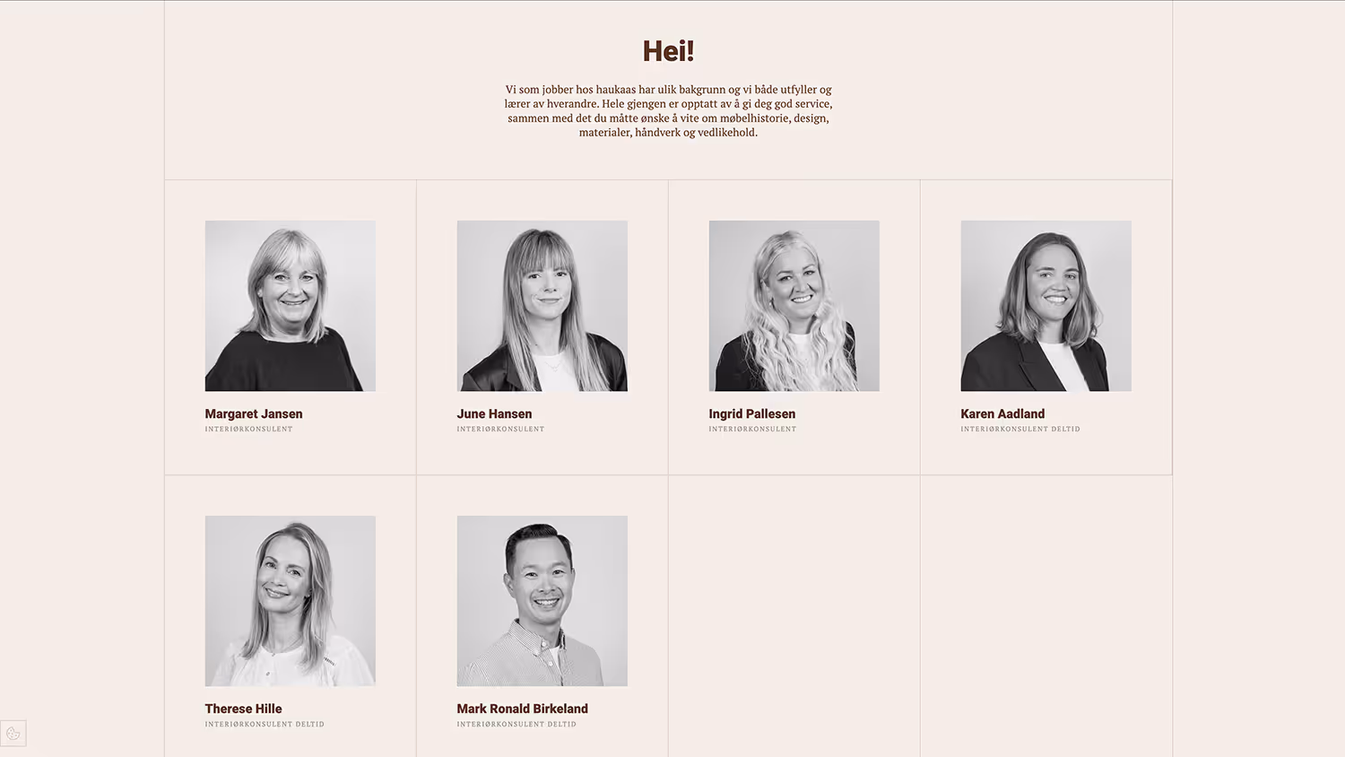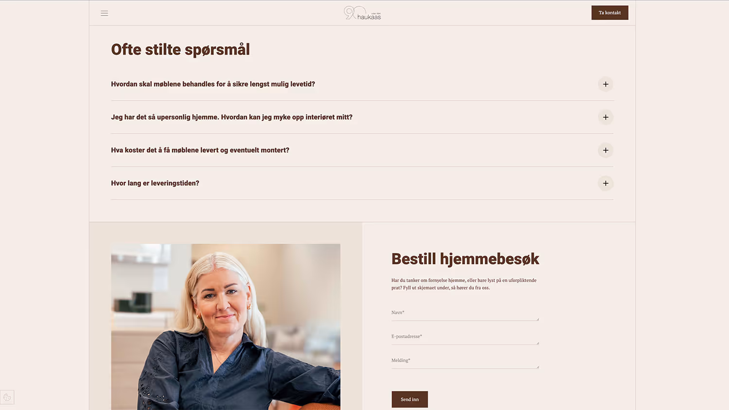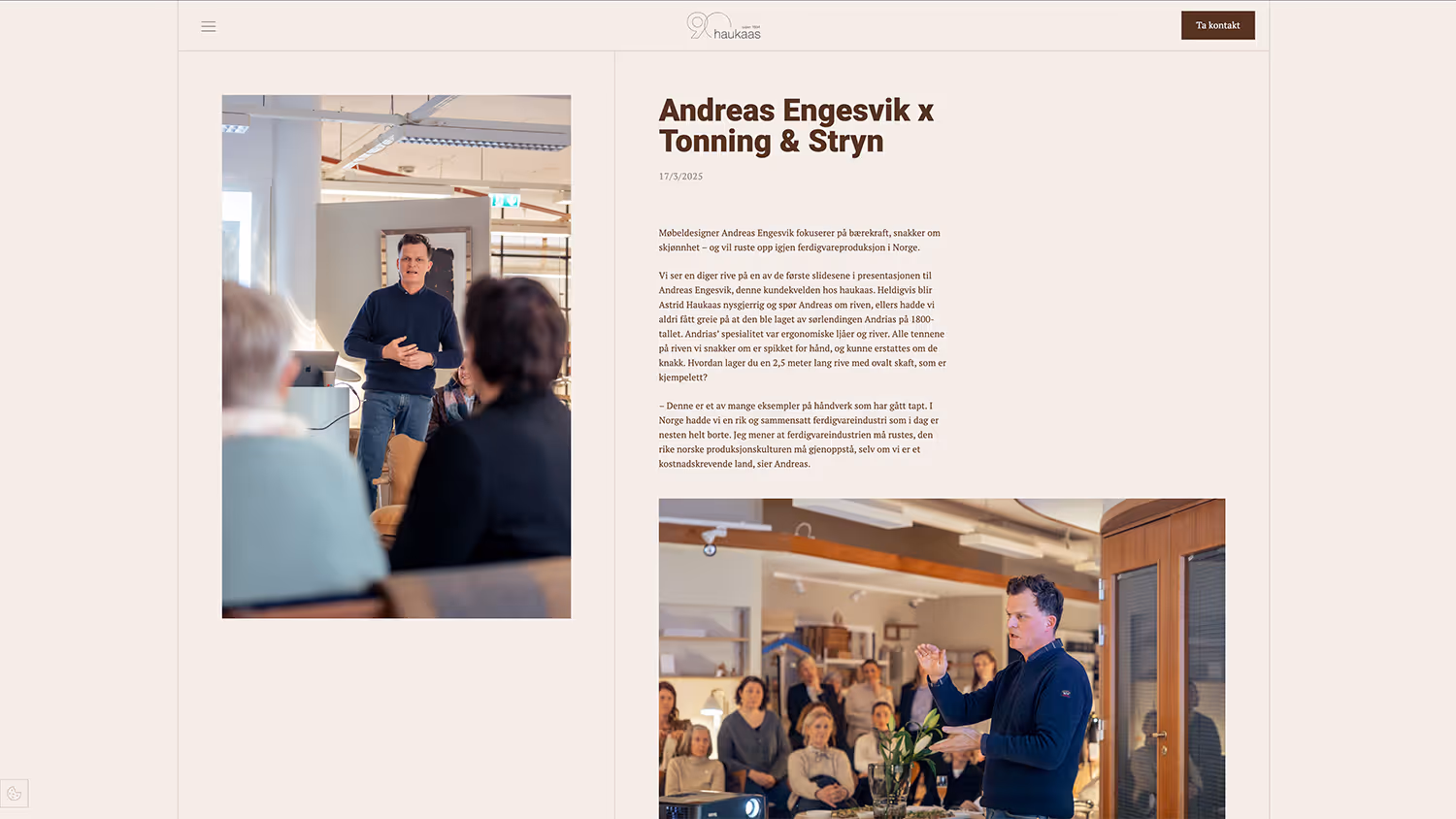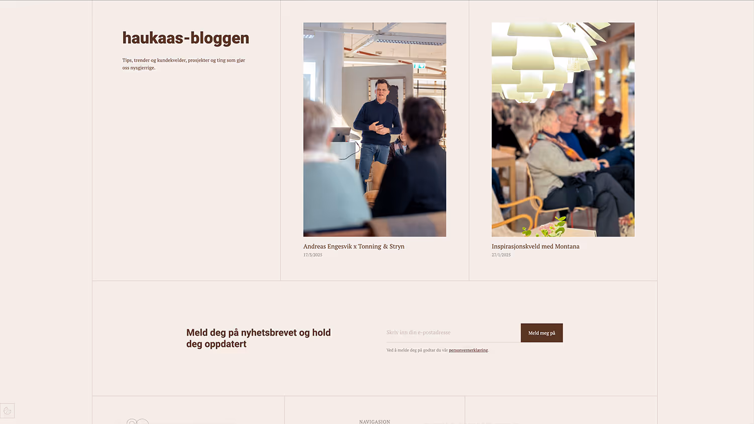 Til tross for sterk identitet og lang erfaring manglet Haukaas en nettside som reflekterte hvem de er i dag. Oppgaven var å utvikle et moderne, skandinavisk uttrykk som tydelig kommuniserer både kvalitet, håndverk og faglig trygghet.