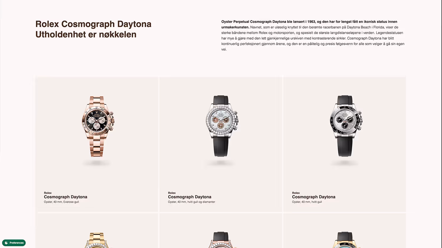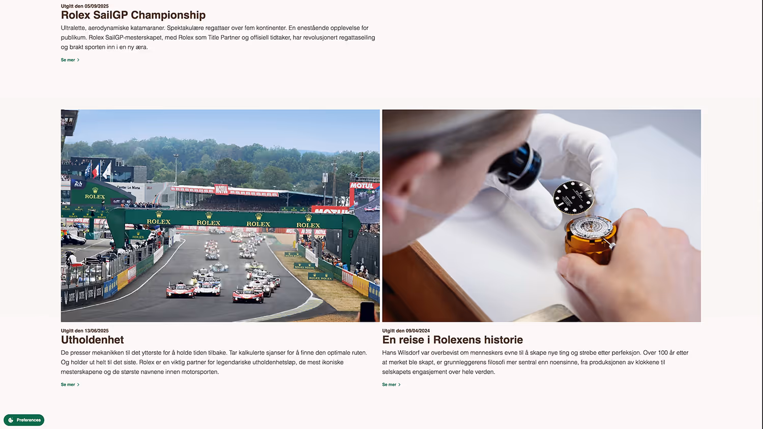Etter flere måneders arbeid og grundige kvalitetssjekker fra Rolex’ tekniske team, ble nettsiden ferdigstilt og godkjent – i tråd med Rolex’ høye standarder for kvalitet og presisjon.